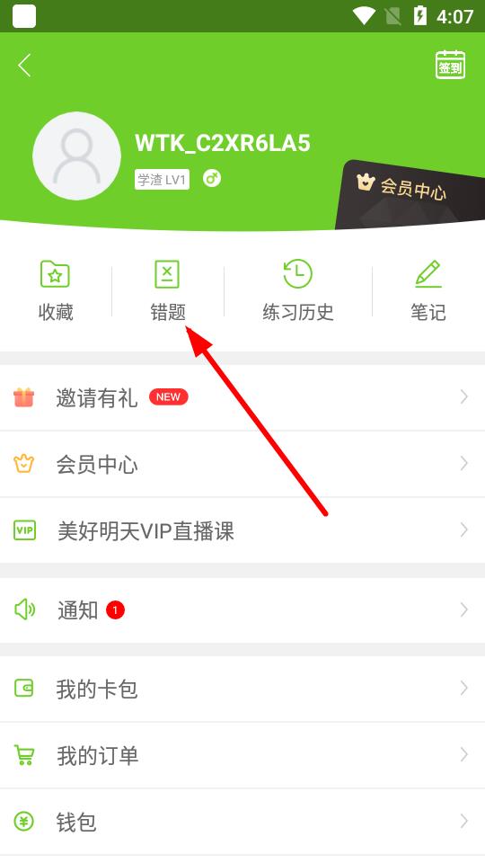 2、在個(gè)人界面中,找到并點(diǎn)擊錯(cuò)題選項(xiàng),進(jìn)入錯(cuò)題查看頁(yè)面。