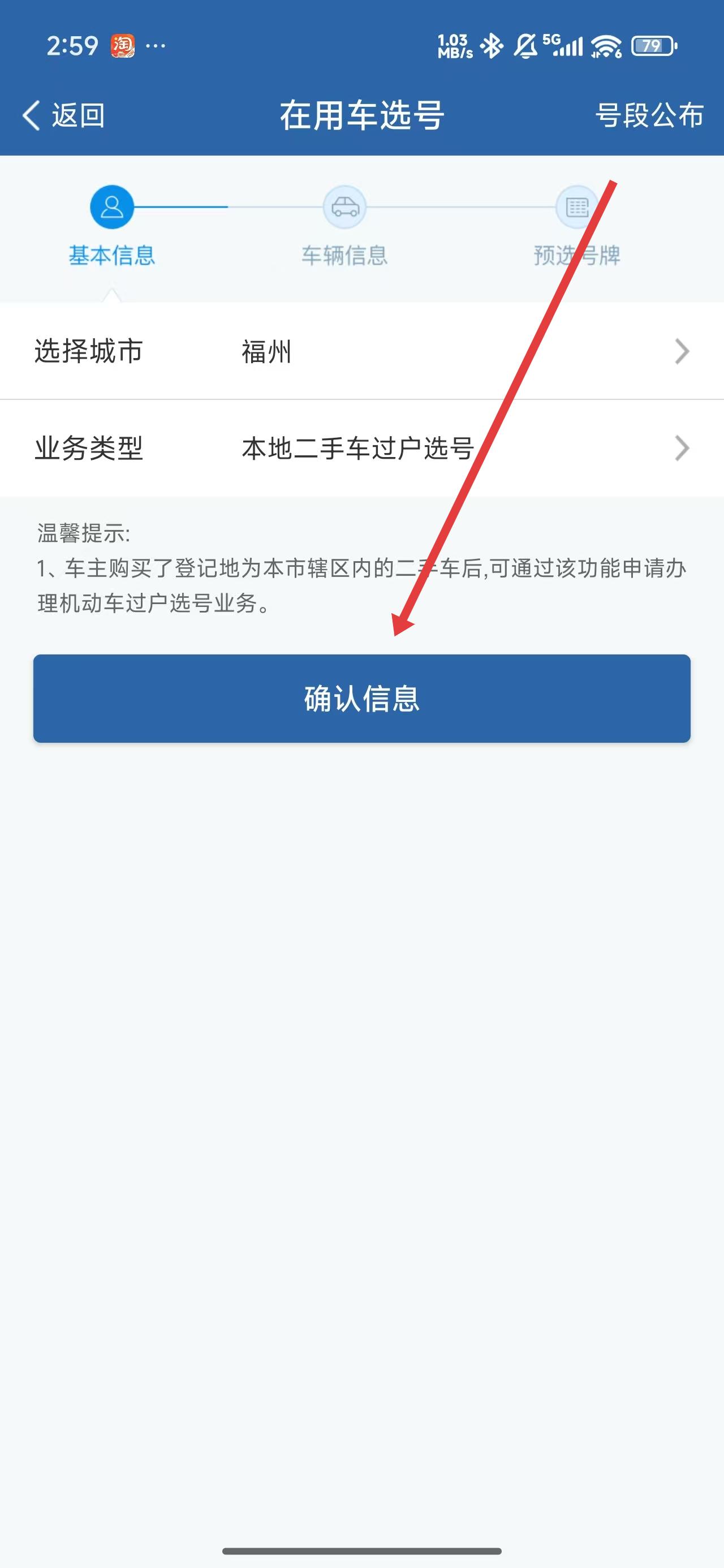 4、在進(jìn)入到選號(hào)頁(yè)面后,在確認(rèn)完信息后,可以點(diǎn)擊確認(rèn)信息按鈕繼續(xù)后續(xù)操作。