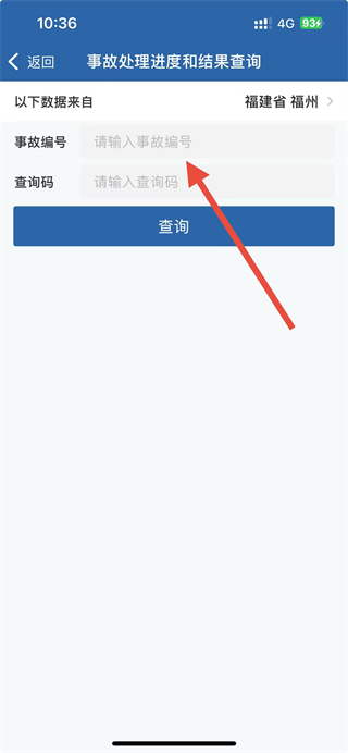 3、在查詢頁(yè)面輸入框內(nèi),輸入事故編號(hào)和查詢碼。