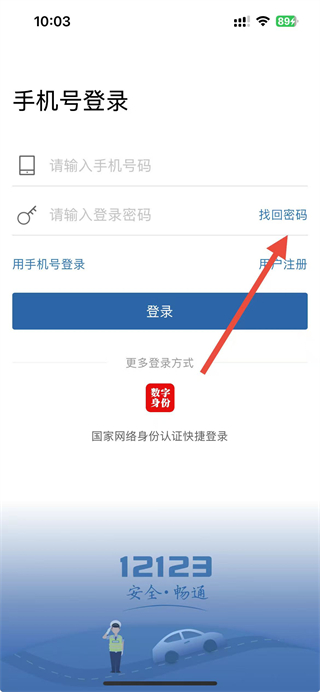 1、在交管12123登錄頁(yè)面,點(diǎn)擊找回密碼選項(xiàng),進(jìn)入找回密碼頁(yè)面。