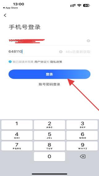 4、將收到的驗(yàn)證碼填在輸入框中,再點(diǎn)擊登錄的按鈕即可完成登錄。