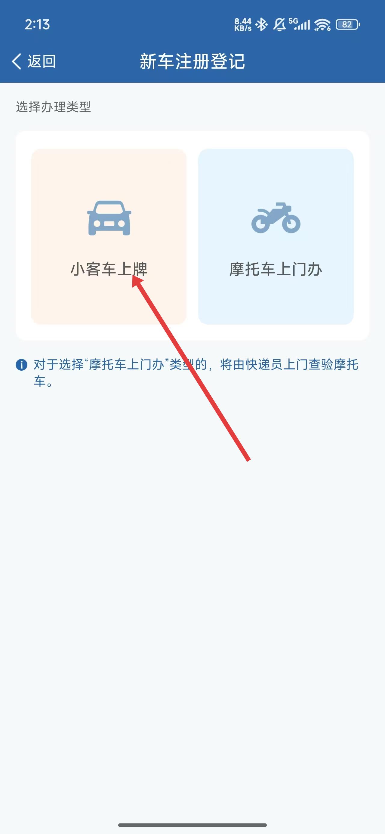 4、可以通過點(diǎn)擊小客車上牌選項(xiàng),開始執(zhí)行小客車上牌操作。