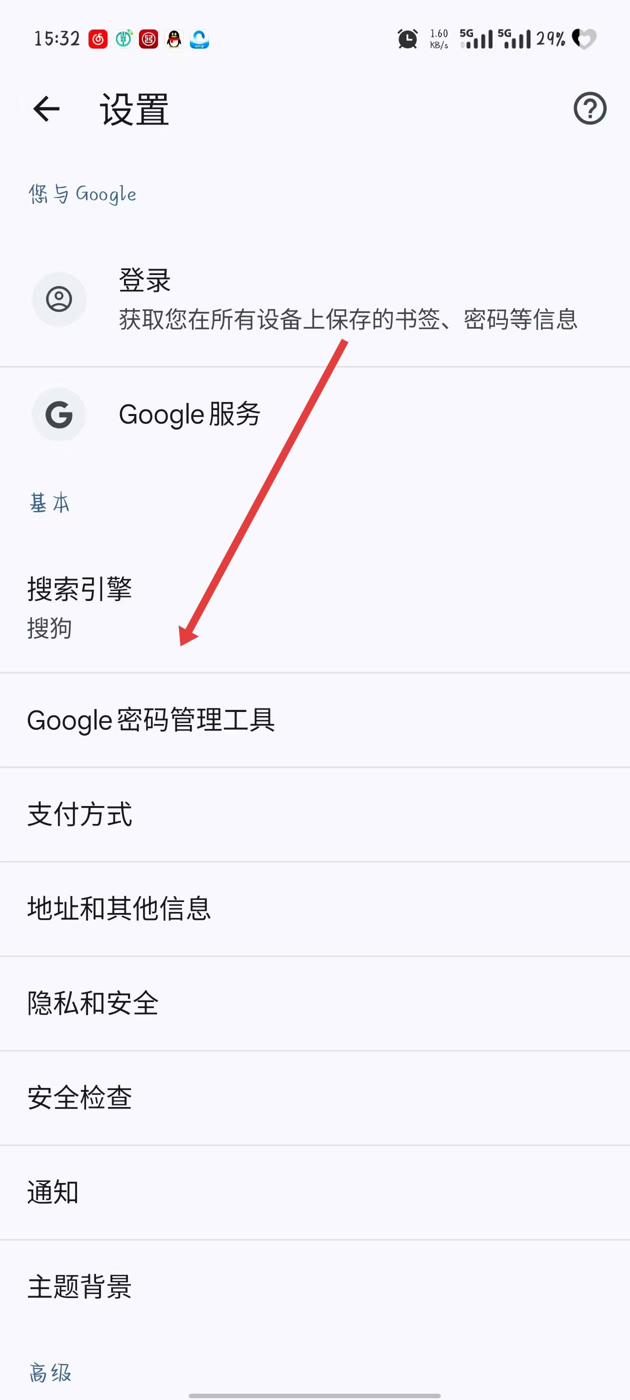 2、在設(shè)置頁面中,找到并點(diǎn)擊搜索引擎選項(xiàng)。