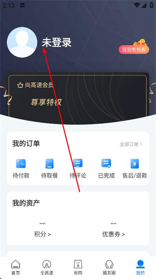 1、打開(kāi)尚高速app,點(diǎn)擊底部導(dǎo)航欄我的。