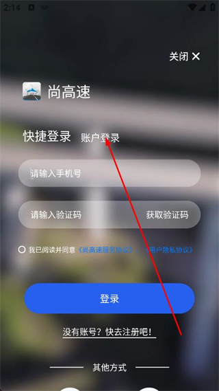 3、進(jìn)入登錄界面后,點(diǎn)擊賬戶(hù)登錄選項(xiàng)。