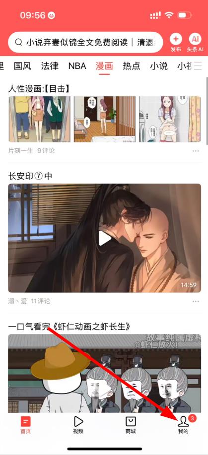 1、點(diǎn)擊今日頭條底部導(dǎo)航欄中的我的。
