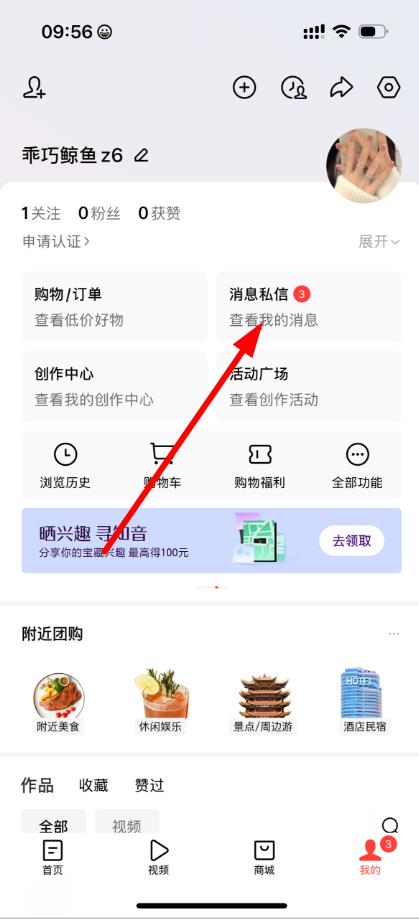 2、在我的頁(yè)面,點(diǎn)擊消息私信。