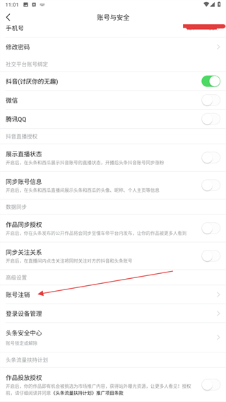 4、在賬號(hào)與安全的頁(yè)面內(nèi),點(diǎn)擊下方賬號(hào)注銷的按鈕即可。