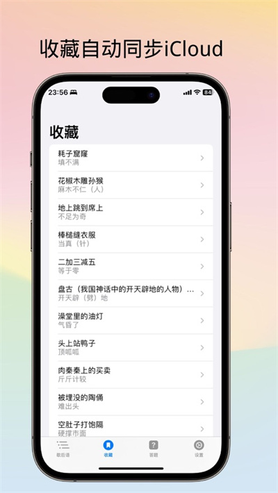 - 收藏的歇后語自動同步到您私人的iCloud存儲中