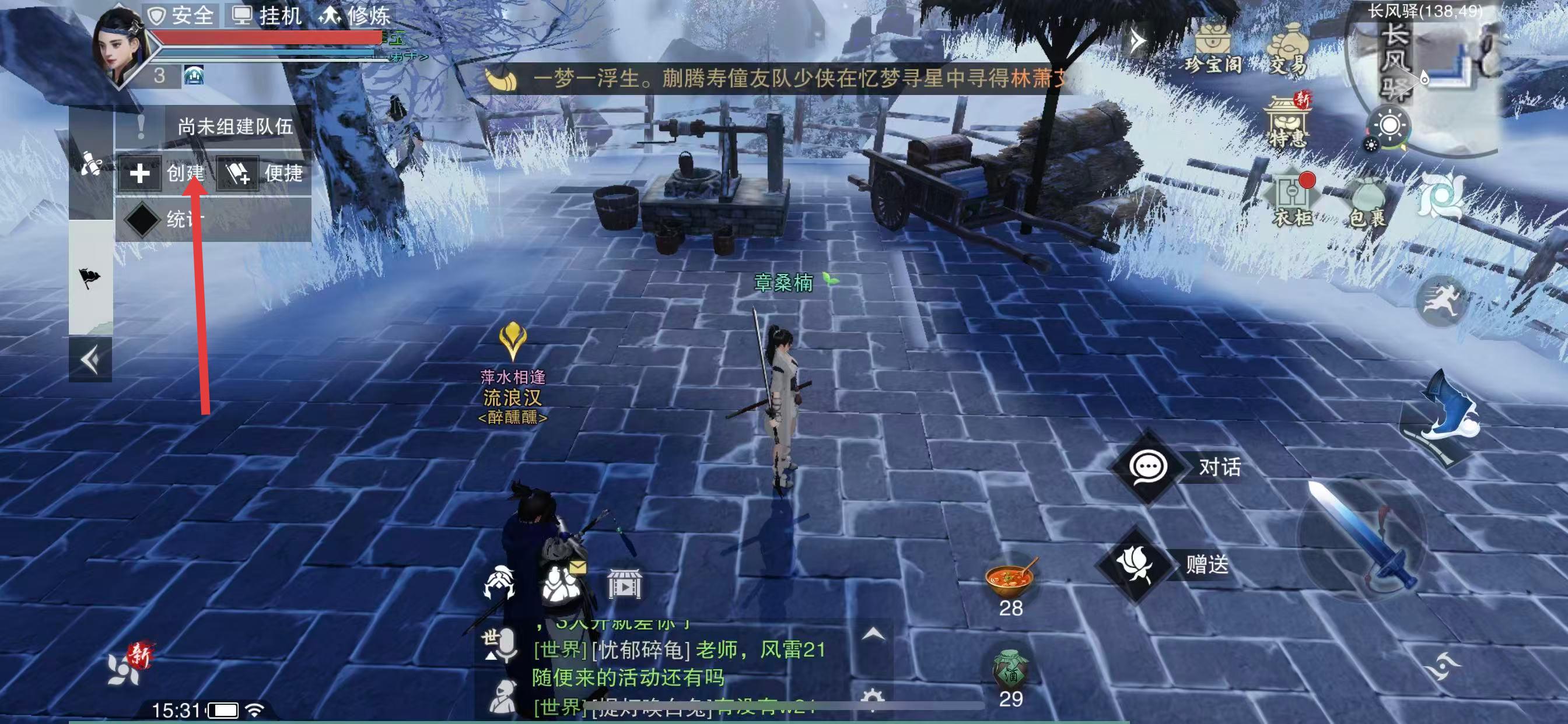 1、打開一夢(mèng)江湖游戲,進(jìn)入游戲主界面,點(diǎn)擊屏幕左側(cè)的隊(duì)伍按鈕。