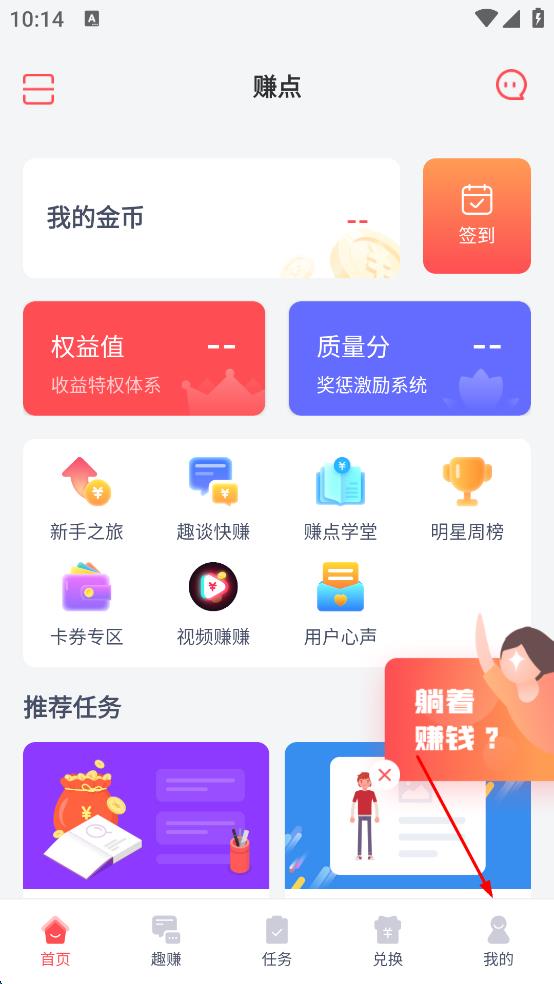 1、進入賺點軟件首頁,點擊右下角我的選項,進入個人頁面。