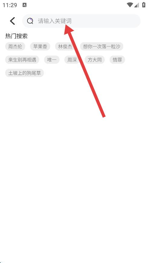 3、在搜索欄中輸入你想要設(shè)置為鈴聲的歌曲關(guān)鍵詞,然后點擊搜索。