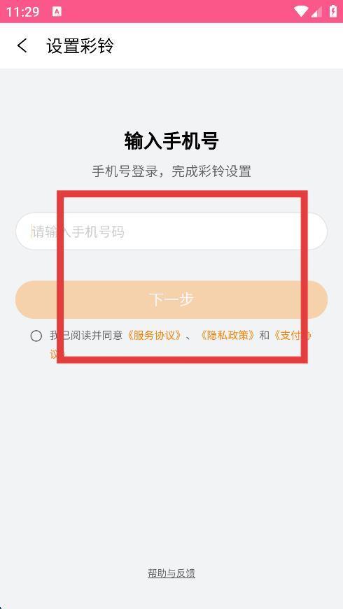 5、在彈出的設(shè)置彩鈴頁面,輸入你的手機號,點擊下一步即可完成鈴聲設(shè)置。