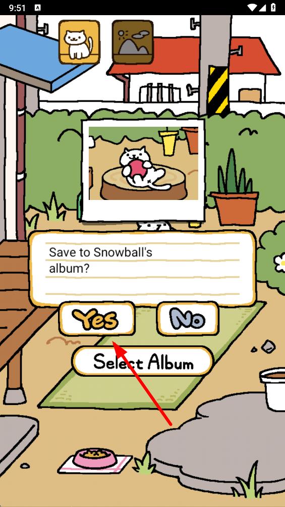 4、確認(rèn)角度無誤后,點(diǎn)擊屏幕完成拍攝,在彈出的是否保存提示框中,點(diǎn)擊Yes,即可將貓咪的照片保存到相冊。