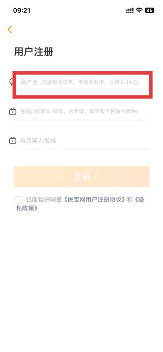 3、點(diǎn)擊輸入框,在輸入框內(nèi)按要求填寫(xiě)用戶名。