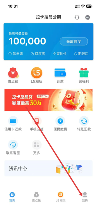 1、打開拉卡拉app,點(diǎn)擊底部導(dǎo)航欄中我的選項(xiàng)。
