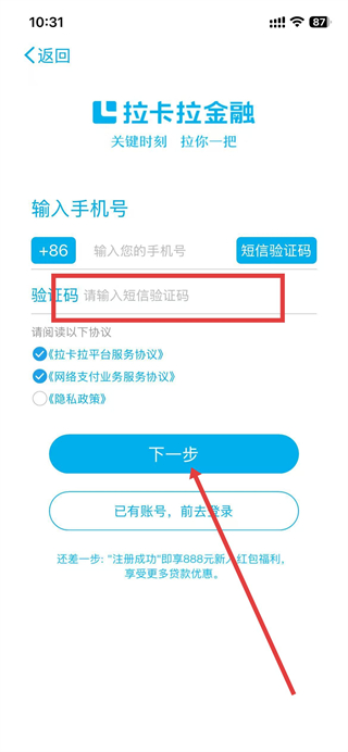 4、填入收到的驗(yàn)證碼,點(diǎn)擊下一步即可完成登錄。