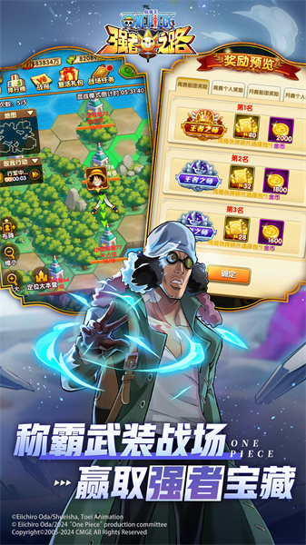 玩家通過(guò)收集和養(yǎng)成原著動(dòng)畫中形形色色的角色來(lái)組成屬于自己的海盜團(tuán),通過(guò)冒險(xiǎn)、闖關(guān)等玩法強(qiáng)化自己的伙伴,在PVP對(duì)決中占據(jù)一席之地,脫穎而出成為最強(qiáng)海盜王。
