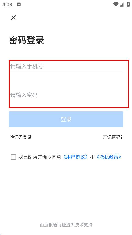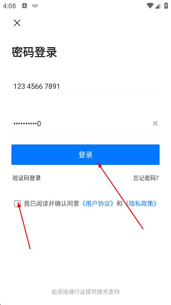 3、在登錄界面,選擇密碼登錄方式,輸入手機(jī)號(hào),接著輸入密碼,然后勾選“我已閱讀并確認(rèn)同意用戶協(xié)議和隱私政策。
