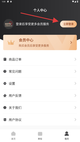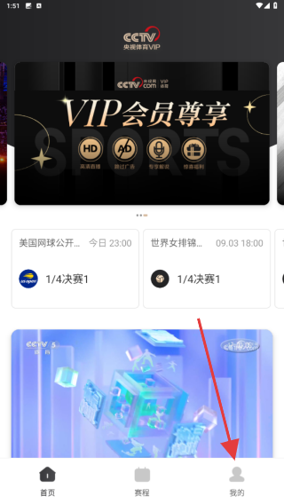 1、打開央視體育App,點擊底部導航欄最右側的我的選項,進入個人中心頁面。