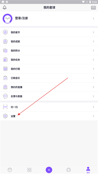 2、進入我的界面內(nèi),用戶需點擊最下方設(shè)置的功能按鈕。