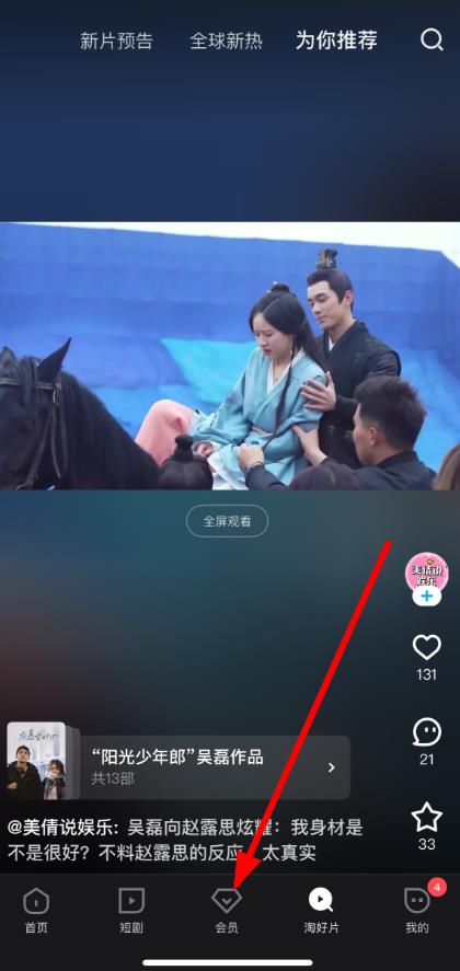 1、打開優(yōu)酷APP,點(diǎn)擊底部導(dǎo)航欄中的會(huì)員選項(xiàng)進(jìn)入會(huì)員界面。