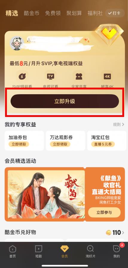 2、在會(huì)員界面中,找到立即升級(jí)按鈕并點(diǎn)擊。