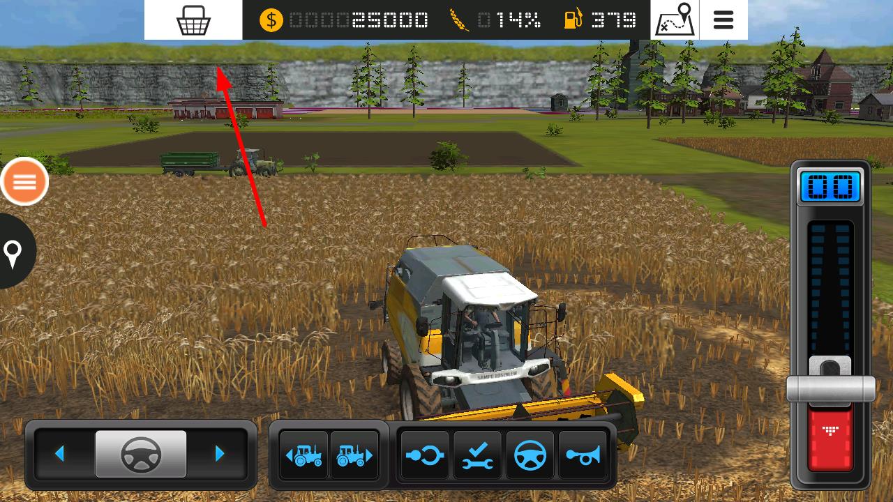 2、在農(nóng)田作業(yè)時(shí)-注意屏幕上方顯示的作物收割進(jìn)度已收割14%的作物,當(dāng)需要購(gòu)買新設(shè)備或物資時(shí),點(diǎn)擊屏幕上方的購(gòu)物籃圖標(biāo)進(jìn)入商店界面進(jìn)行選購(gòu)。
