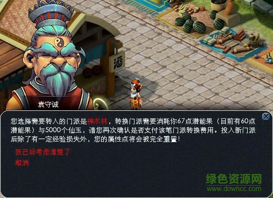 3、對門派、需要消耗的潛能果和仙玉進行確認。