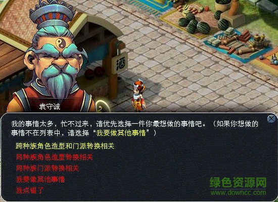 1、進入游戲,在長安城(173,14)處找到NPC袁守誠,選擇選項“同種族門派轉(zhuǎn)換相關(guān)”,申請進行門派轉(zhuǎn)換。