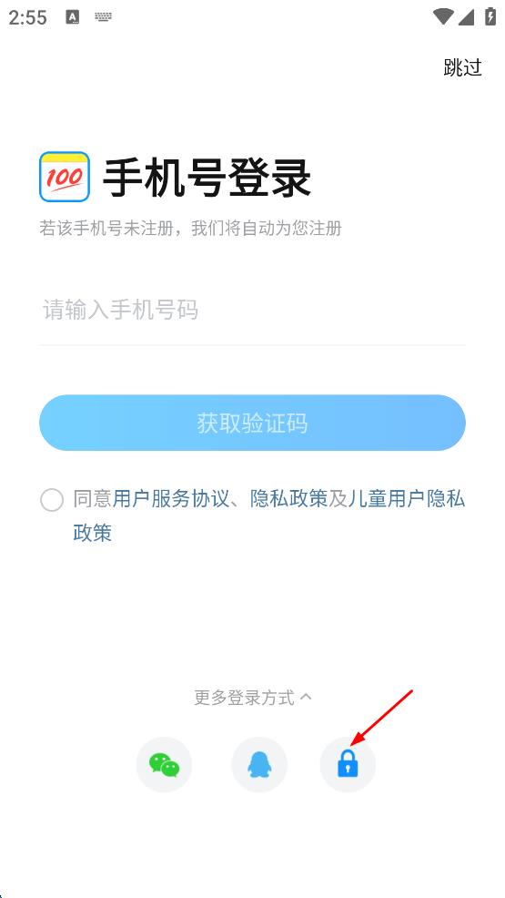 2、進(jìn)入登錄頁(yè)面,點(diǎn)擊密碼登錄選項(xiàng),切換到密碼登錄界面。