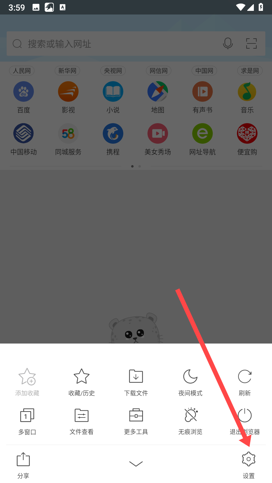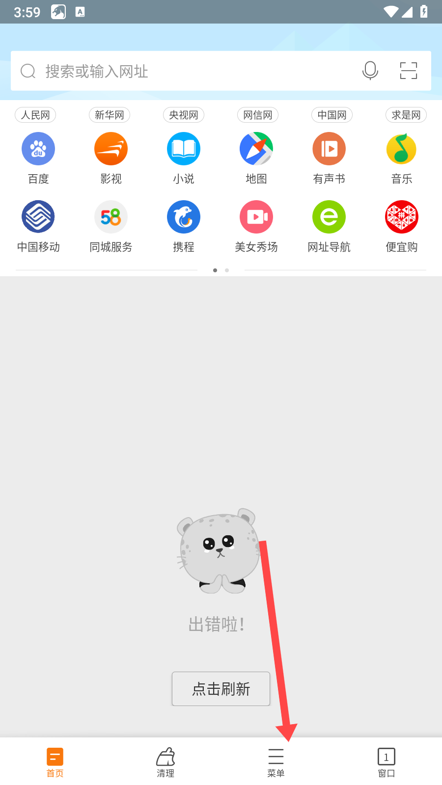 1、打開獵豹瀏覽器,點(diǎn)擊底部導(dǎo)航欄中的菜單圖標(biāo)。