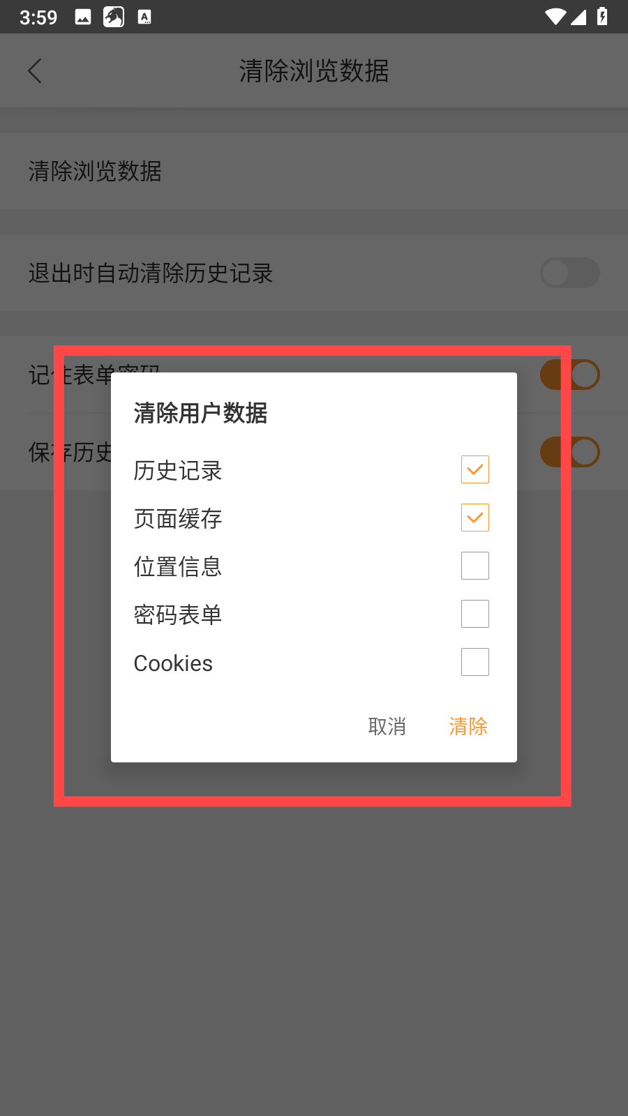 5、勾選歷史記錄,也可根據(jù)需要勾選其他數(shù)據(jù)選項(xiàng),點(diǎn)擊清除。
