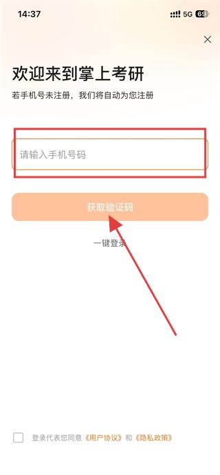 3、在登錄頁面,輸入手機(jī)號,獲取驗證碼。