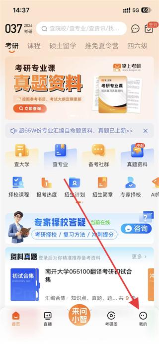 1、打開掌上考研,點擊底部導(dǎo)航欄我的。