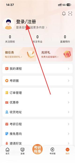 1、在掌上考研的首頁需要點擊我的,進(jìn)入個人功能的頁面。