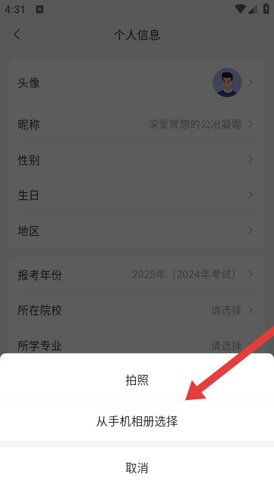 4、選擇從手機相冊選擇或拍照,選取目標照片,完成頭像更換。