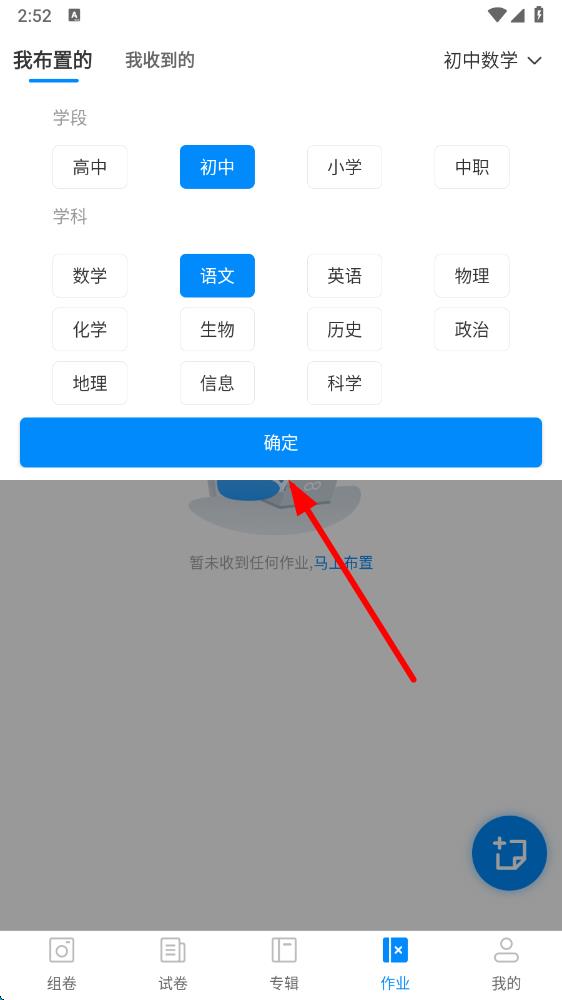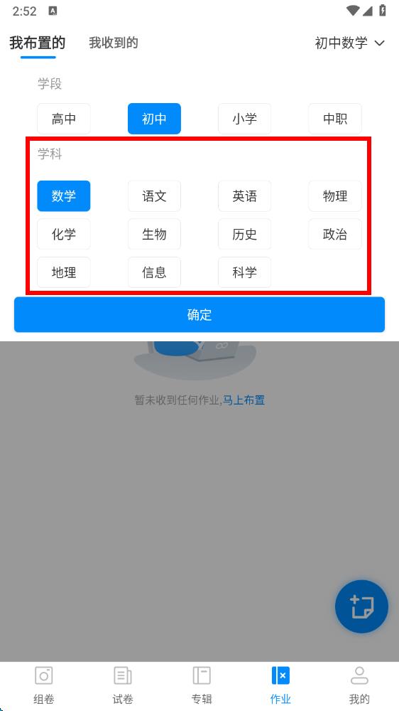 4、點(diǎn)擊想要更改的學(xué)科選項(xiàng),選擇完畢后點(diǎn)擊確定,即可完成學(xué)科更改。