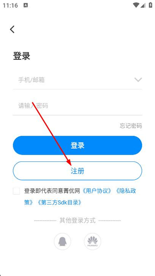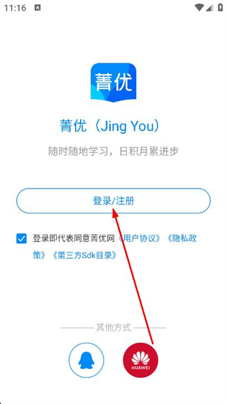 1、打開菁優(yōu)網(wǎng)app,點(diǎn)擊下方的登錄/注冊按鈕。