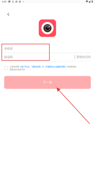 2、進(jìn)入登錄的頁面內(nèi),輸入要注冊(cè)的手機(jī)號(hào)、驗(yàn)證碼,再點(diǎn)擊下一步。