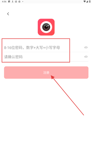 3、進(jìn)入最后一步,在該頁面內(nèi)輸入注冊(cè)密碼后,再點(diǎn)擊注冊(cè)的按鈕。