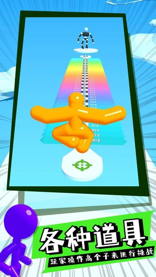 我要變巨人是畫風(fēng)非常魔性的趣味跑酷手游,游戲的主角是色彩艷麗的橡皮人,玩家需要控制它不斷前進(jìn)讓體型變得更大,路上會(huì)有各種障礙和加分道具,靈活選擇有用的撿起來,最后到達(dá)終點(diǎn)還要和巨人戰(zhàn)斗,贏得比賽可以獲得豐厚獎(jiǎng)勵(lì)。
