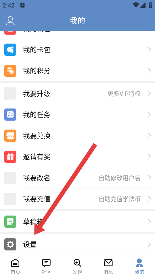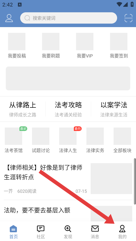 1、在學(xué)法網(wǎng)首頁點(diǎn)擊最右邊我的按鈕,進(jìn)入個(gè)人功能的頁面。