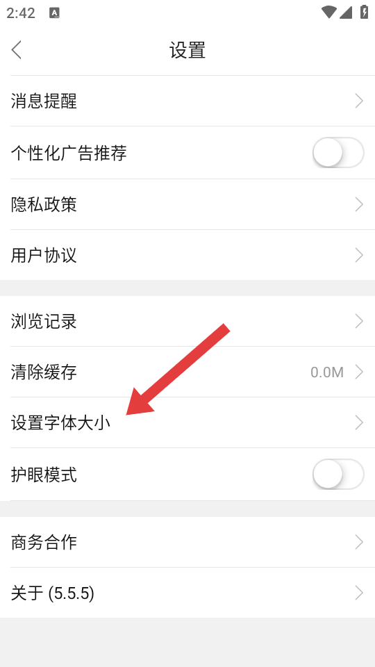 3、在設(shè)置界面點(diǎn)擊設(shè)置字體大小,進(jìn)入字體大小調(diào)整的頁面。