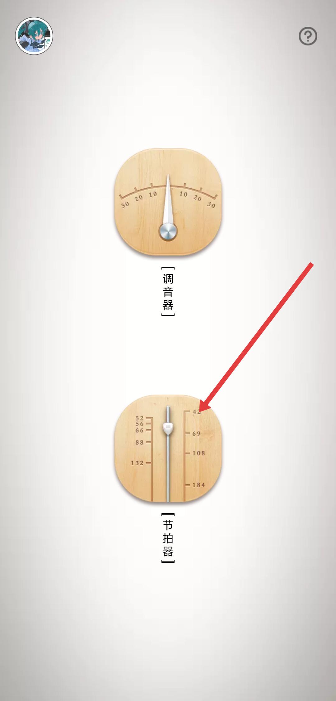 1、打開民樂調(diào)音器APP,在功能選擇界面點(diǎn)擊節(jié)拍器,進(jìn)入節(jié)拍器的操作頁面。