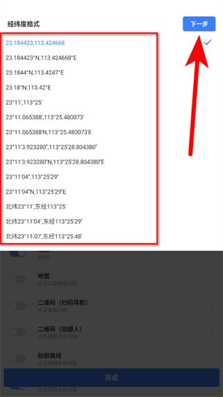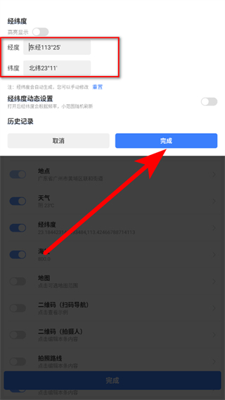4、可手動(dòng)修改經(jīng)度、緯度信息,點(diǎn)擊完成按鈕,即可完成經(jīng)緯度格式修改操作。