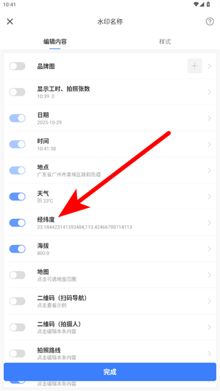2、在水印名稱編輯頁(yè)面,點(diǎn)擊經(jīng)緯度選項(xiàng)。