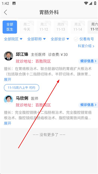 4、在科室醫(yī)生列表頁(yè)面,選擇要預(yù)約的醫(yī)生。