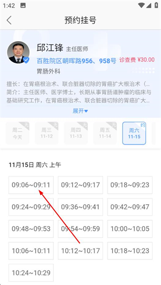5、在預(yù)約掛號(hào)頁(yè)面,選擇具體的預(yù)約時(shí)間。
