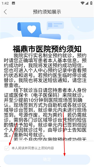 2、在預(yù)約須知展示頁(yè)面,勾選須知,點(diǎn)擊確定。